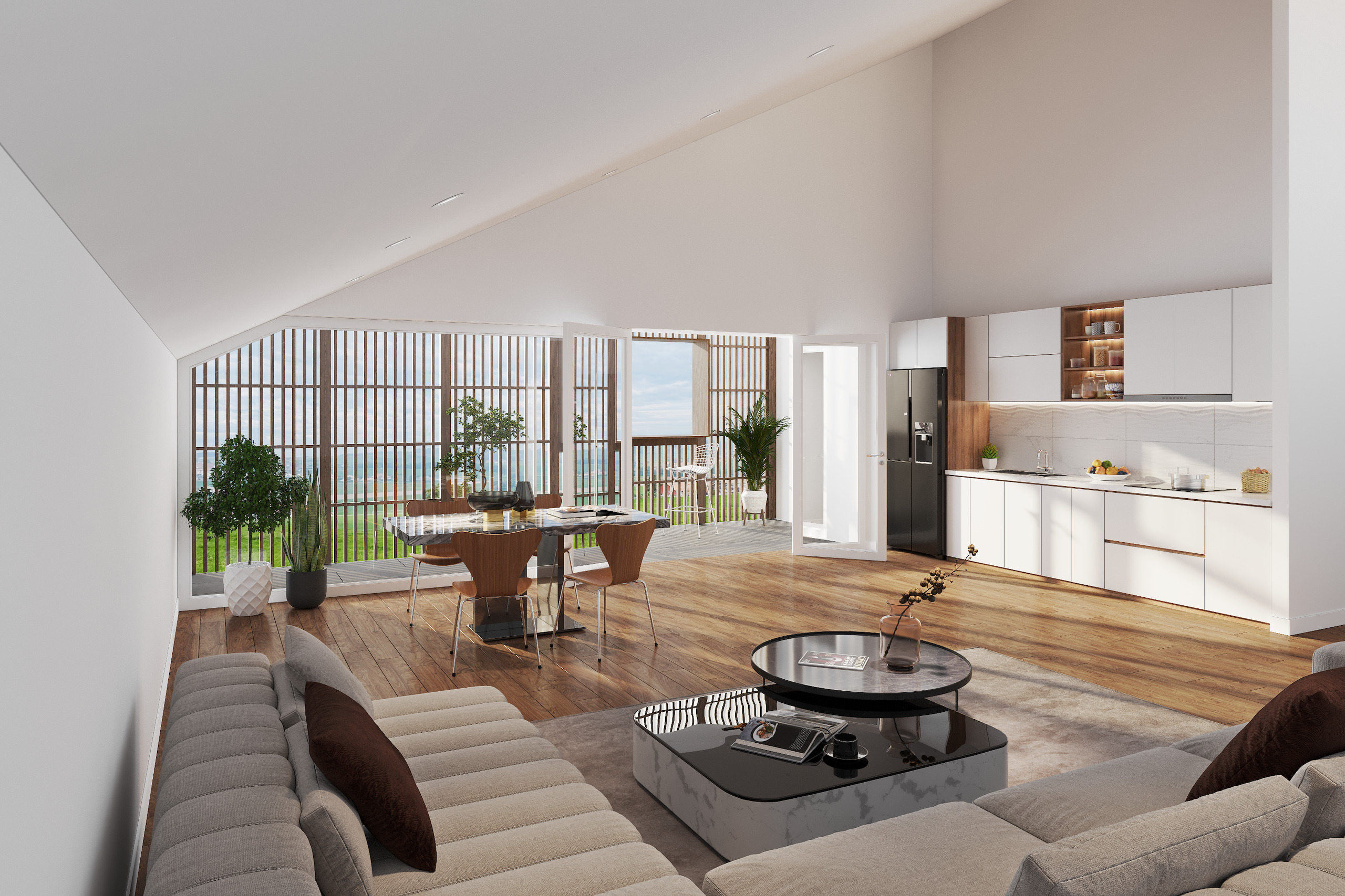 La cuisine ouverte, sera équipée de tous les appareils modernes et sera idéale pour préparer de délicieux repas tout en restant connecté avec vos proches dans le salon et la salle à manger adjacents.