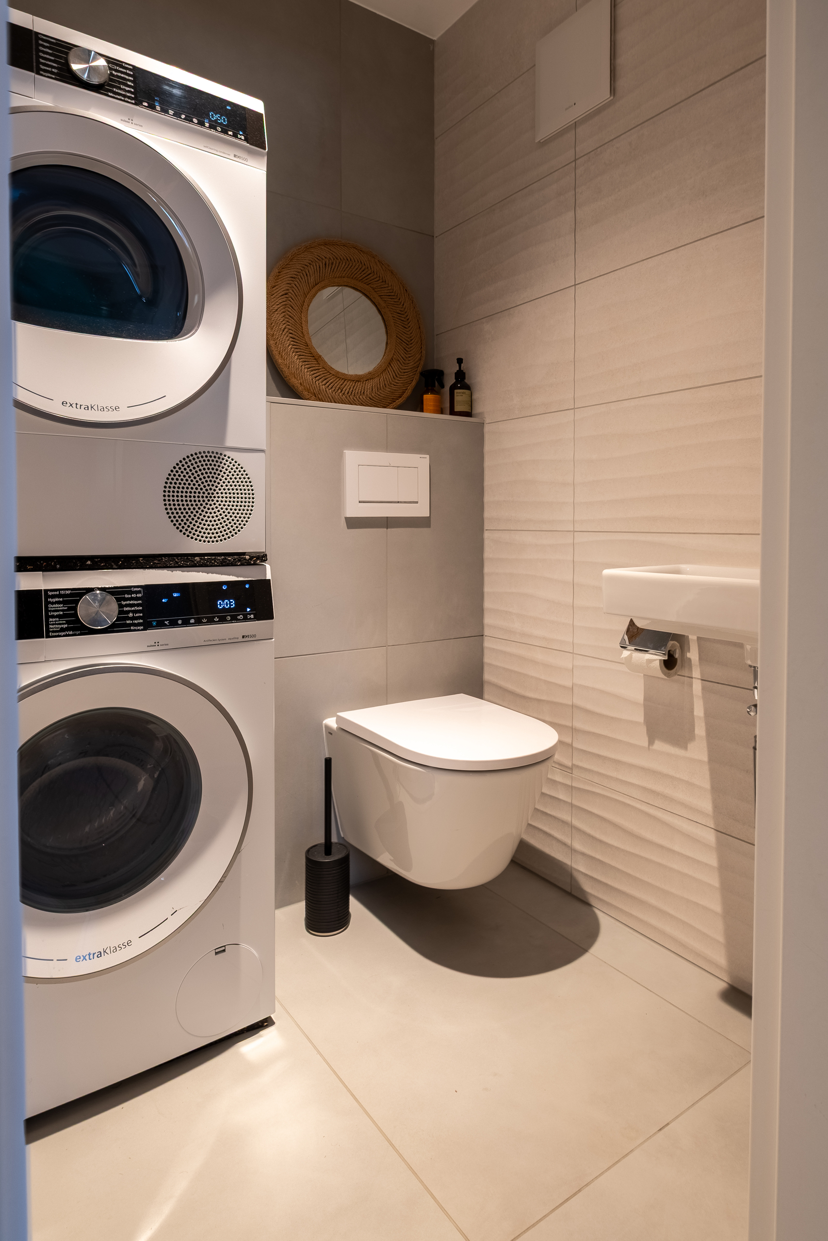 - Un WC visiteurs généreux avec colonne de lavage (lave-linge et sèche-linge inclus).