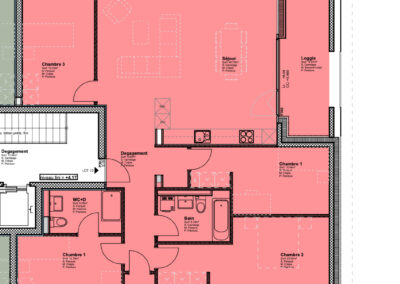 Les deux autres chambres de 12,85 et 16 m2, ainsi bien proportionnées et lumineuses, offriront un espace confortable pour accueillir les enfants ou pour être aménagées selon les besoins spécifiques de chaque occupant. La hauteur sous les combles, atteignant jusqu’à 5,30 mètres, créera une sensation d’espace et de grandeur unique à cet appartement. Cet appartement en attique sera bien plus qu’un simple lieu de résidence, mais un véritable havre de paix où l’on pourra se ressourcer, avec la nature et savourer chaque instant dans un cadre à couper le souffle.