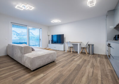 - Séjour – salle à manger spacieux et lumineux (17 m²) avec accès direct au balcon