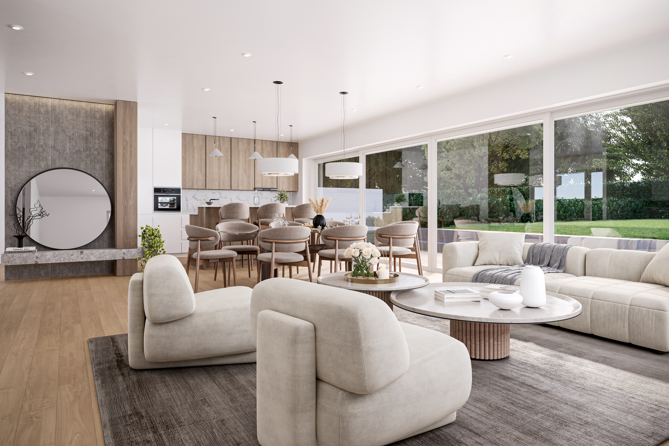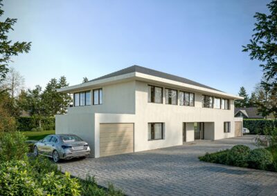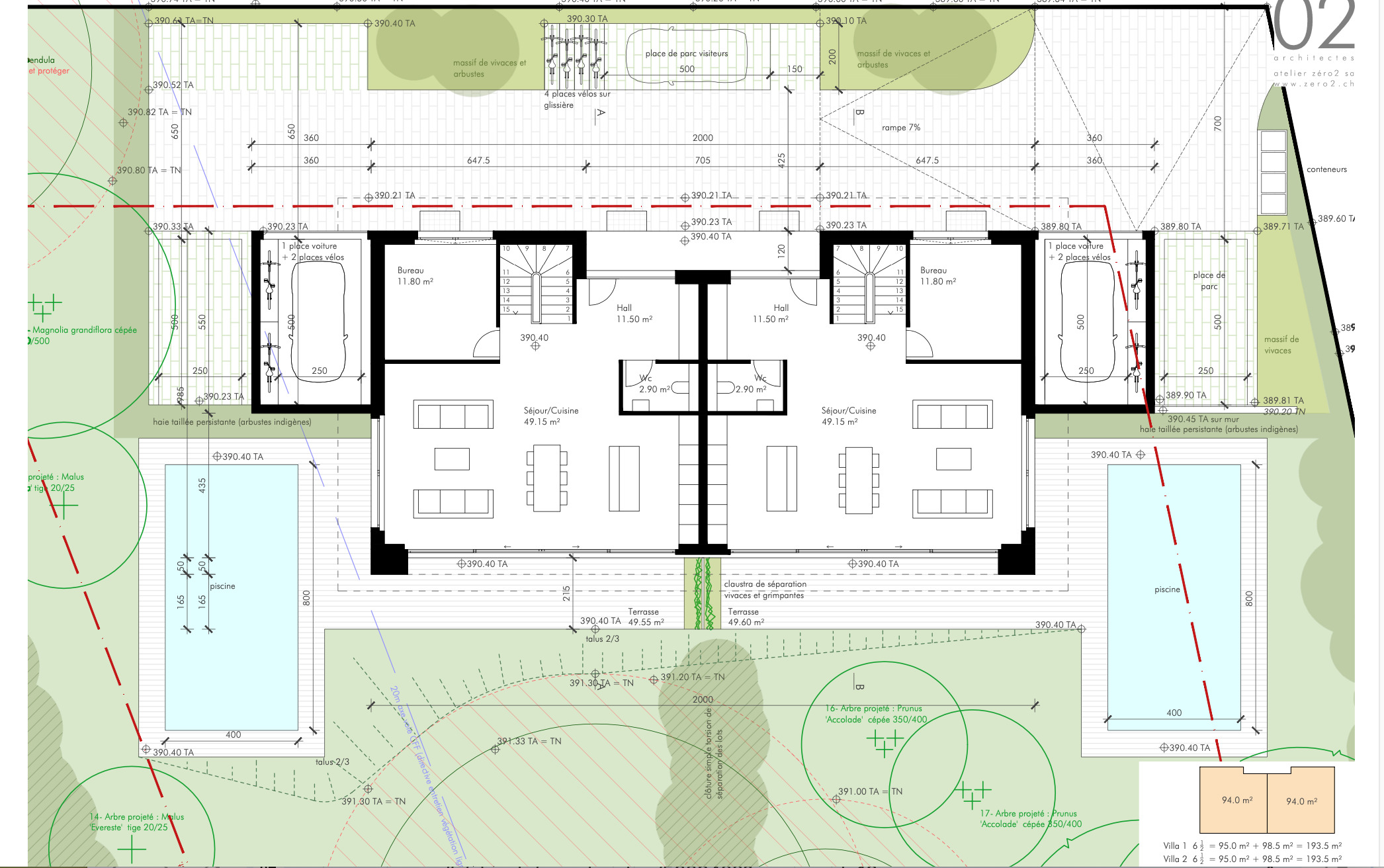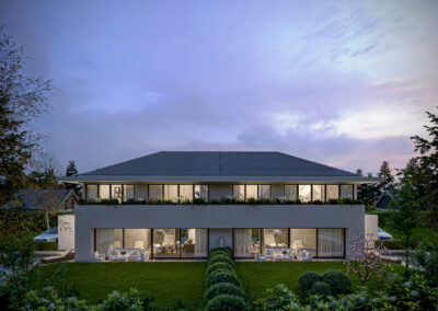 Les deux villas jumelles contemporaines et lumineuses de 6,5 pièces, offriront une généreuse surface habitable utile de 239 m2 y compris un sous-sol et elles seront livrées en été 2027.