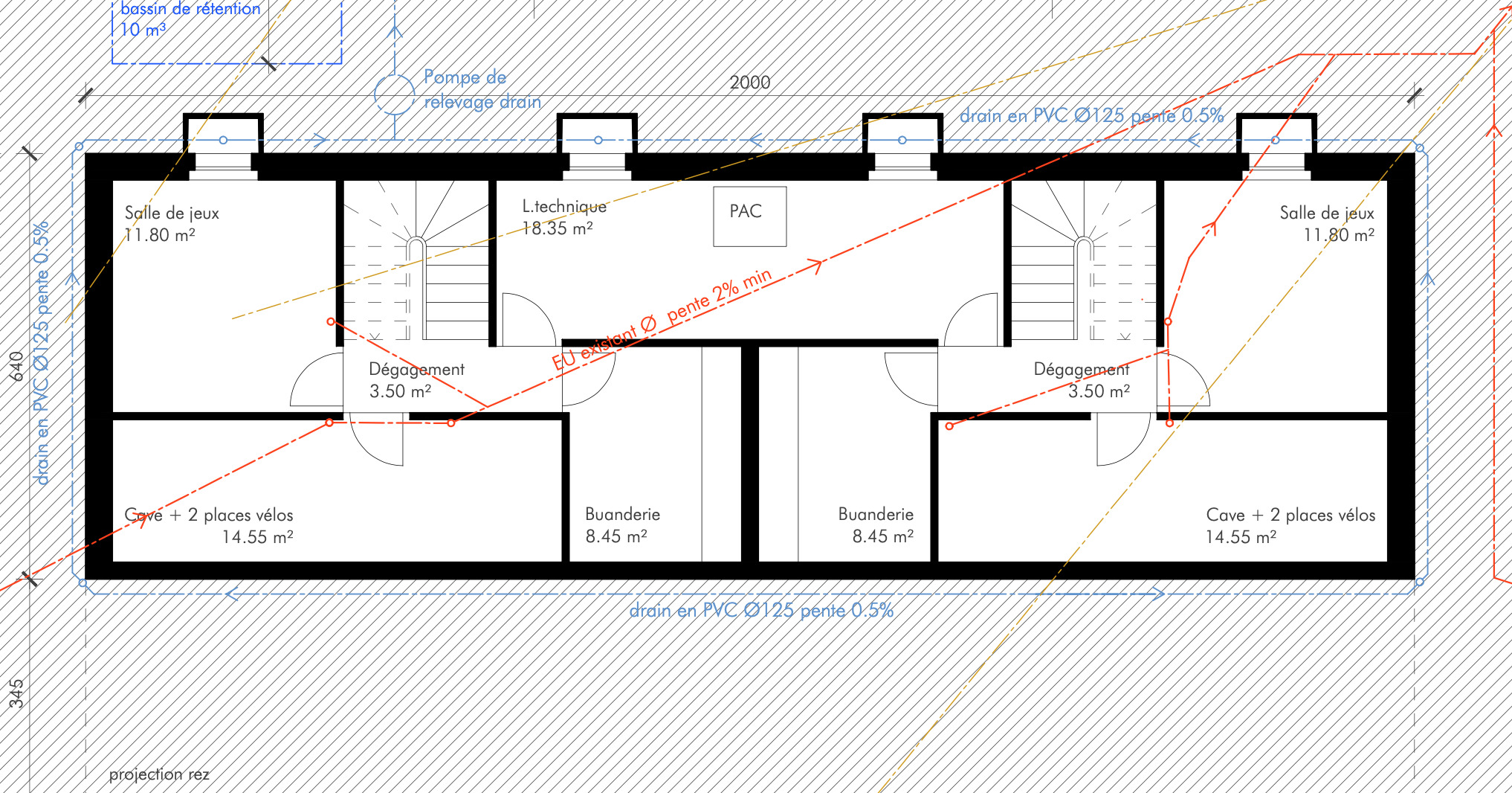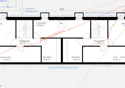 Le sous-sol d’une surface de 53 m2 comprend une salle de jeux de 11,8 m2, idéale pour les loisirs, ainsi qu’une buanderie et des espaces de rangement spacieux. Une cave spacieuse de 14,55 m2 vient enrichir les possibilités de stockage et local technique est partagé entre les deux villas disposant d’une porte anti-feu de haute qualité, apportant sécurité et privacité complète.