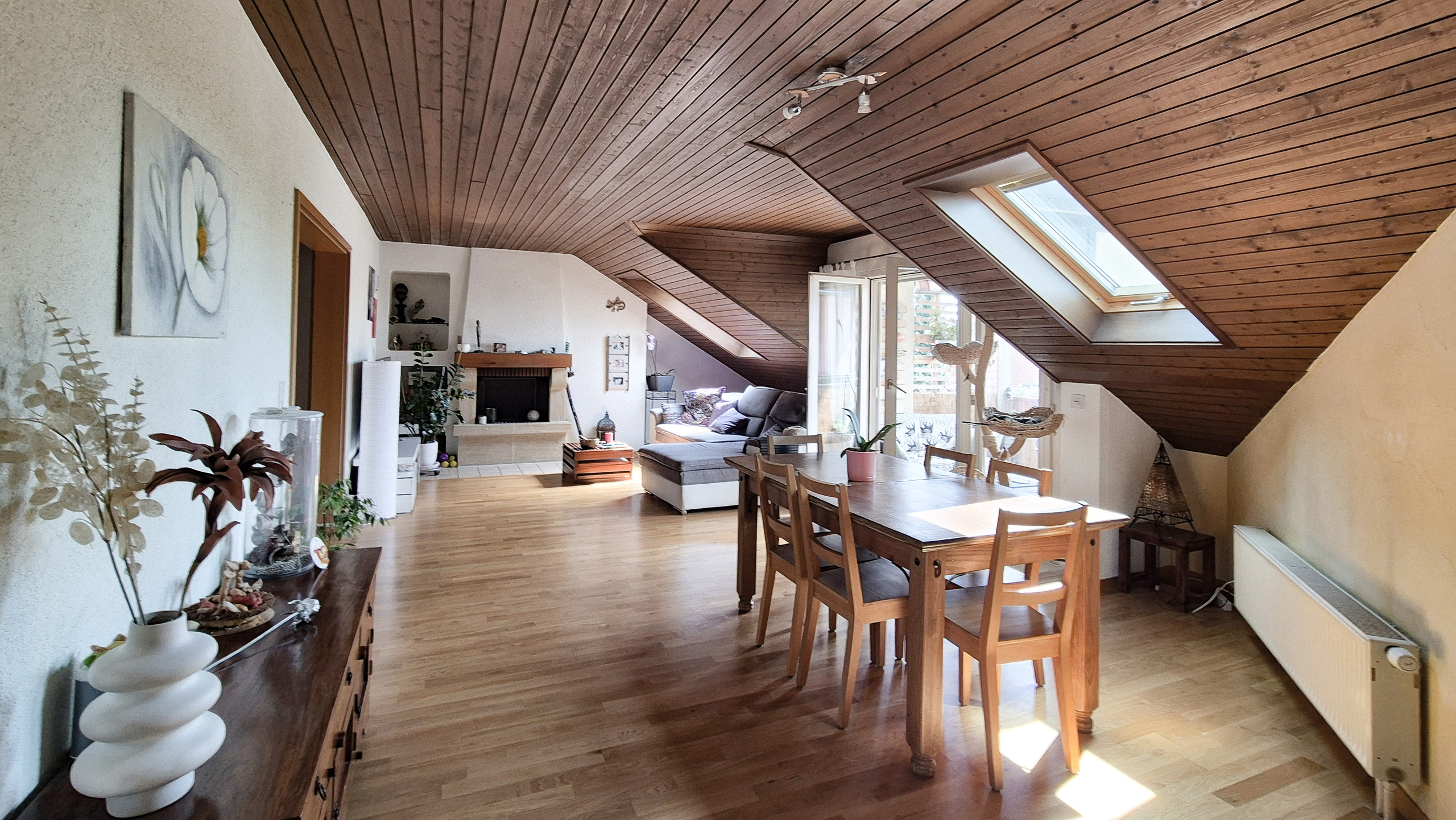Au 3eme étage d’un immeuble de 3 niveaux soigneusement entretenu avec ascenseur, ce superbe appartement de 4,5 pièces offre env. 122 m2 habitables, complétés par des combles aménagées accessibles par escalier, idéales pour un bureau, une salle de jeux ou un espace de création.
