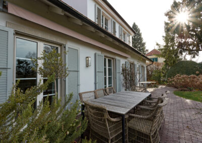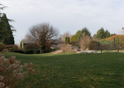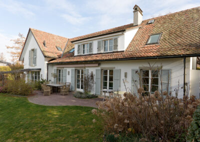 Implantée sur une parcelle d’environ 1’500 m², la propriété bénéficie d’un jardin paysager d’une rare élégance. Les haies et arbustes, sculptés en formes arrondies et vallonnées, confèrent à l’ensemble un caractère unique et artistique.