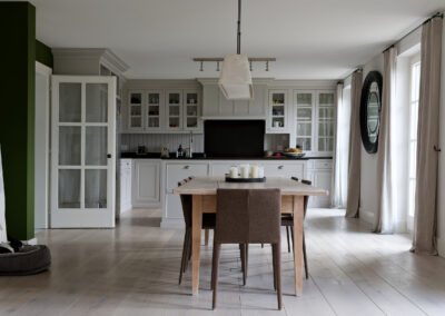 La cuisine, résolument contemporaine, séduira les amateurs de gastronomie : équipée d’une cuisinière à gaz, elle s’organise autour d’un îlot central généreux, pensé comme un lieu de partage et de convivialité. Une porte automatique assure une séparation discrète avec le salon, garantissant un confort optimal.