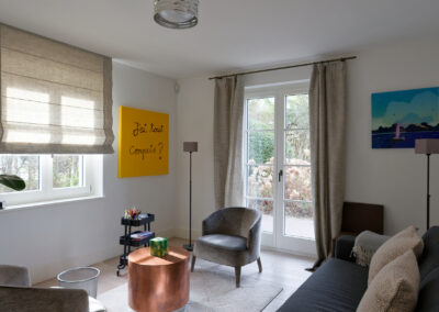 Une élégante chambre avec accès direct au séjour dispose de sa propre salle de bain, idéale pour recevoir en toute intimité. Une seconde salle de bain complète ce niveau. L’ensemble des chambres bénéficie d’armoires murales sur mesure, parfaitement intégrées.