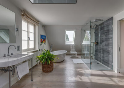 Deux autres chambres spacieuses (env. 24 m² et 30 m²), chacune avec leur salle de douche privative, complètent cet étage. Une configuration permettant aisément la création d’une chambre supplémentaire.