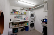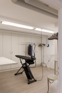 - une buanderie avec espace de repassage, lumière naturelle et rangements intégrés