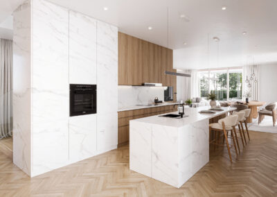 Les espaces de vie ont été pensés pour offrir de beaux volumes et une luminosité optimale tout au long de la journée. La maison disposera de 3 grandes chambres, chacune dotée de sa propre salle d’eau.