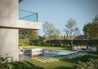 En option, il est possible de réaliser une grande piscine ainsi qu’un espace barbecue pour profiter pleinement des