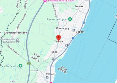 Ce quartier verdoyant bénéficie d’un cadre de vie exceptionnel pour la région. Une ligne de bus se trouve à proximité directe et permet de rejoindre la gare de Nyon en 15 min. Le centre de Genève se situe à moins de 20 min. Écoles, commerces et autres commodités à moins de 10 min.